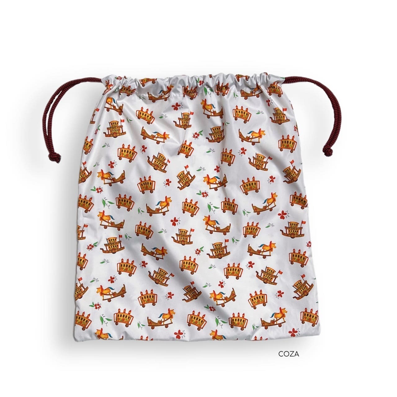 Мешок COZA для хранения вещей с принтом "Игрушки", белый фон, на шнурке, 30х30 см